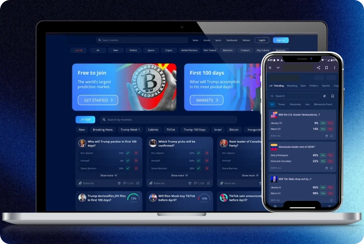 Starten Sie Prognosemarkt-Plattformlösungen, die von Polymarket, Kalshi oder Augur inspiriert sind, mit vorgefertigten Klon-Architekturen.
